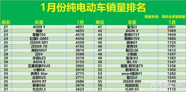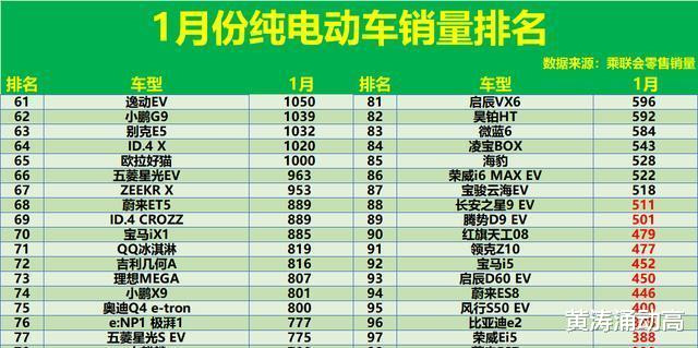 1月份,超百款纯电动汽车销量不足500辆,含宝马i5、荣威Ei5等。中高端国产如飞凡F7、小鹏P7等销量200余辆,别克E4、福特电马等合资车型仅售几十辆。